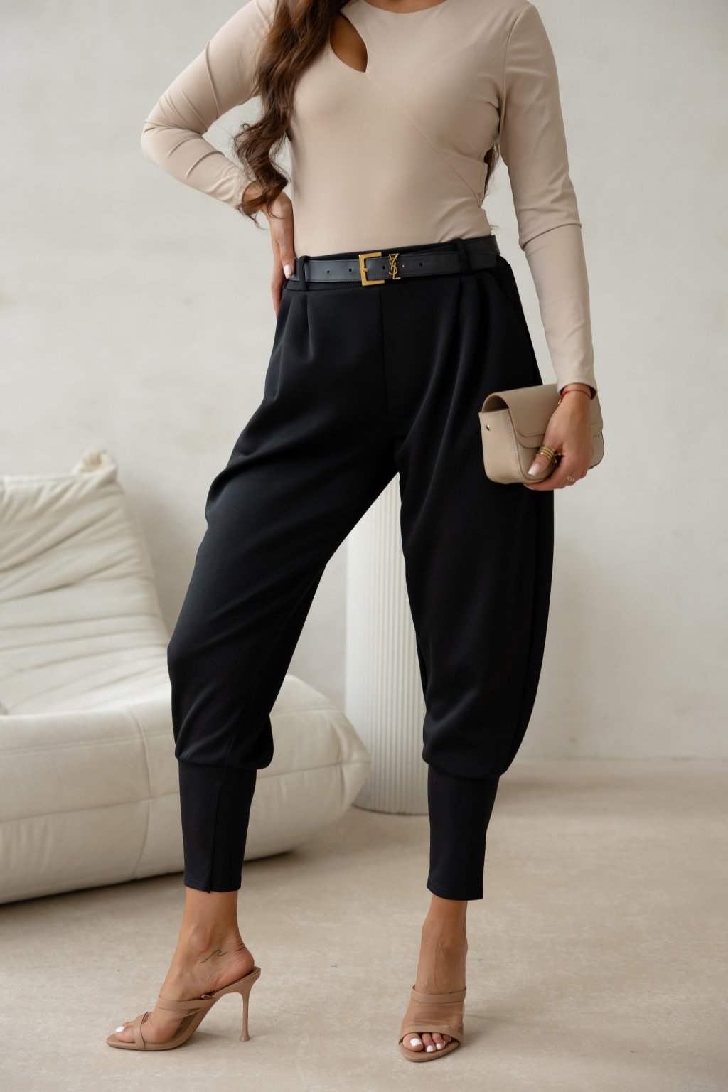 Volné, elegantní kalhoty, které zaujmou svou nadčasovostí a pohodlím. Díky elastickému pasu krásně sedí na postavě a přizpůsobí se velikostem M až XL.