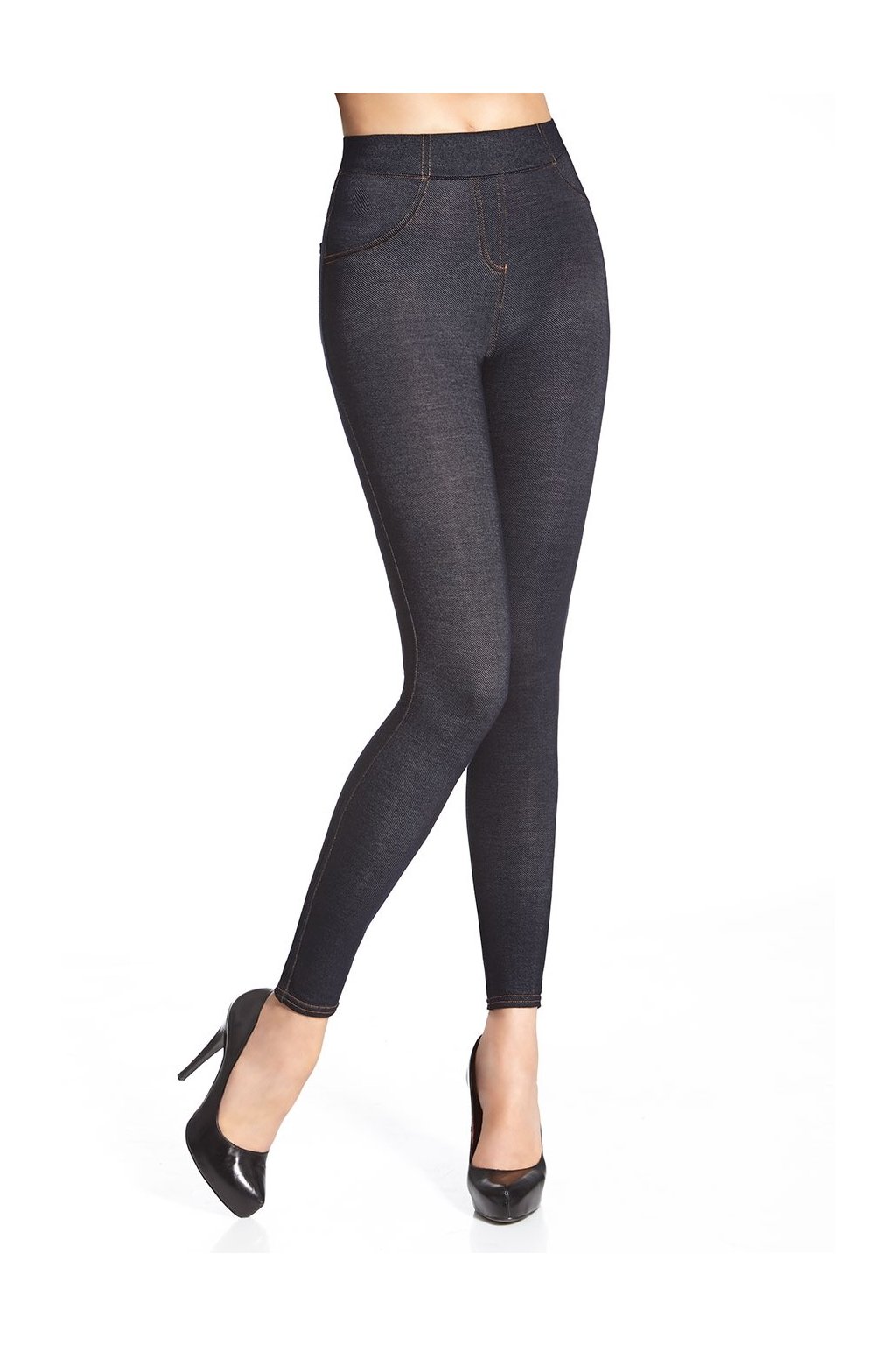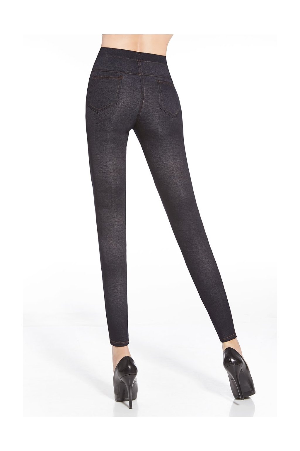 Kvalitné dámske legíny vyrobené z elastického materiálu. Imitácia džínsoviny. Tieto džínsové legíny sú veľmi pohodlné.