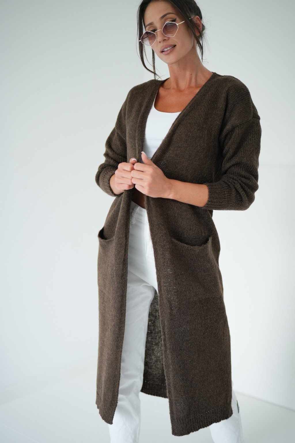 Objevte delší kardigan Loon, sahající pod kolena, vyrobený z kvalitního úpletu s jemnou strukturou. Tento elegantní kousek je vybaven dvěma praktickými kapsami a nabízí mimořádné pohodlí a styl. Ideální pro každodenní nošení i speciální příležitosti. Dodejte svému stylu šmrnc s tímto jedinečným kardiganem.