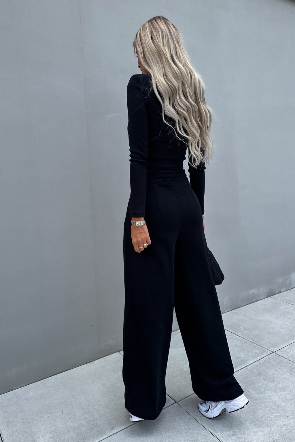 Dámský set složený z tepláků a žebrovaného topu s dlouhým rukávem. Hit této sezony.