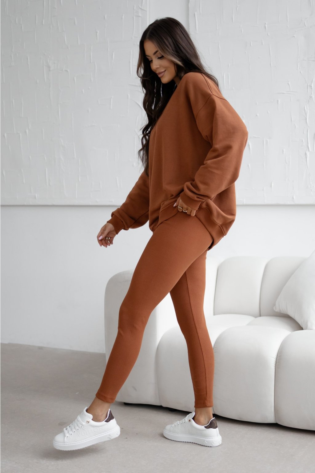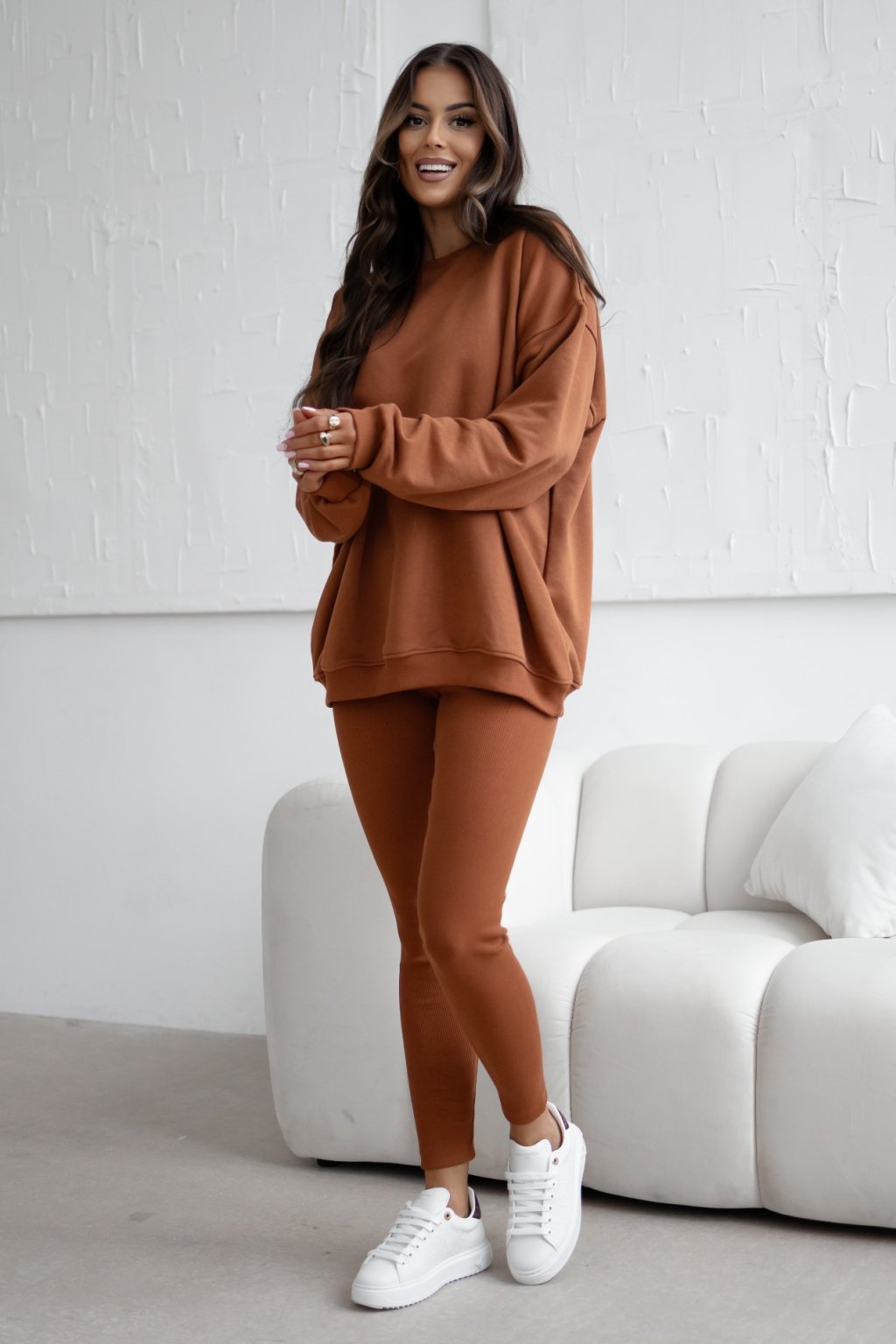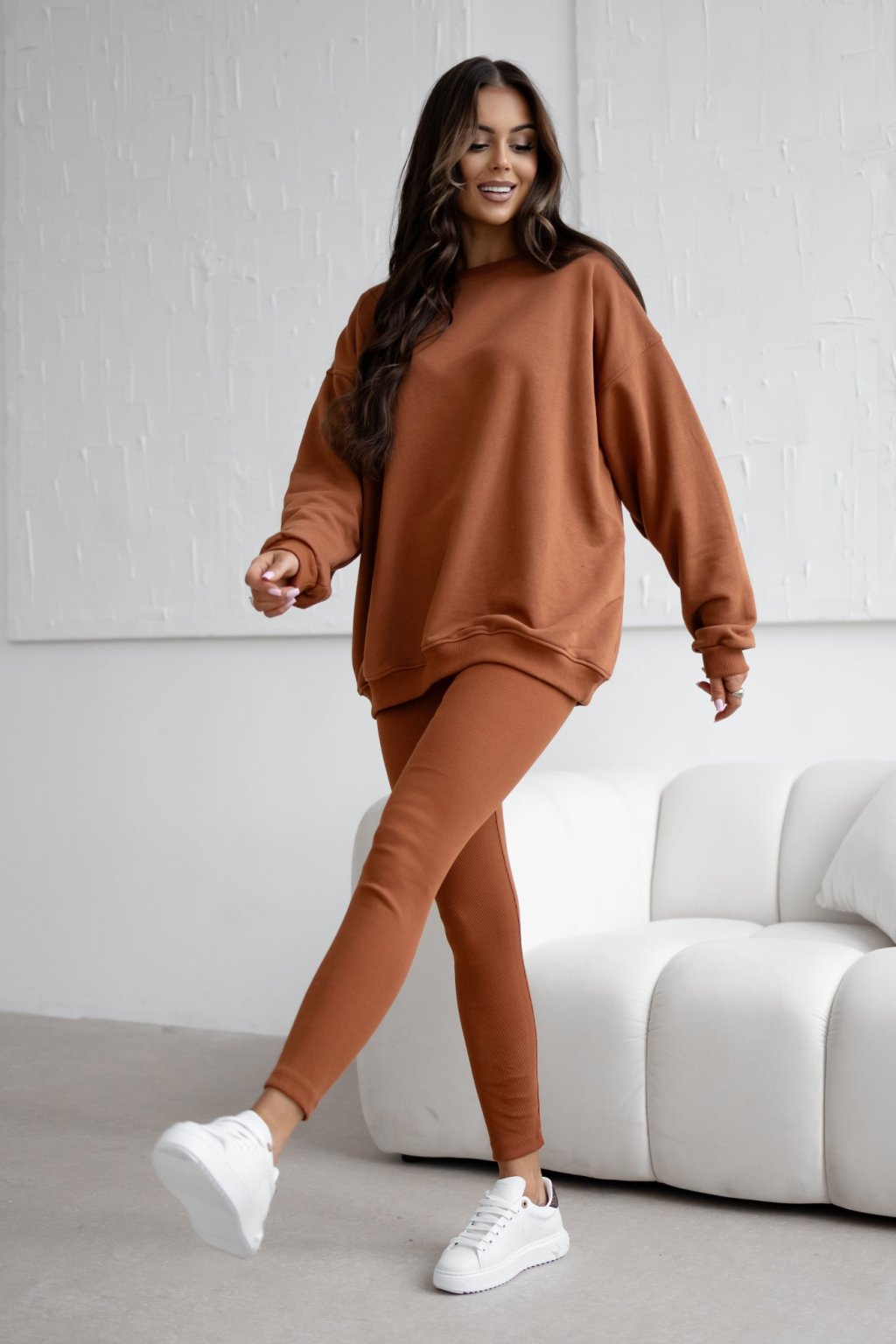 Oversize mikina v tomto kompletu je dokonalým kouskem pro každý outfit. Její volný střih dodává pocit pohodlí, zatímco její moderní design zajišťuje, že budete vypadat stylově, ať už jste kdekoli. Žebrované legíny jsou skvělým doplňkem k mikině. Jsou vyrobené z kvalitního, bavlněného materiálu. Žebrování dodává legínám jedinečný vzhled, který je odlišuje od ostatních.