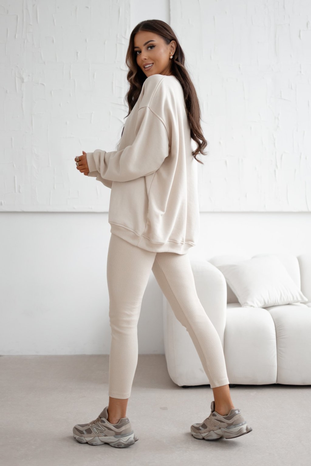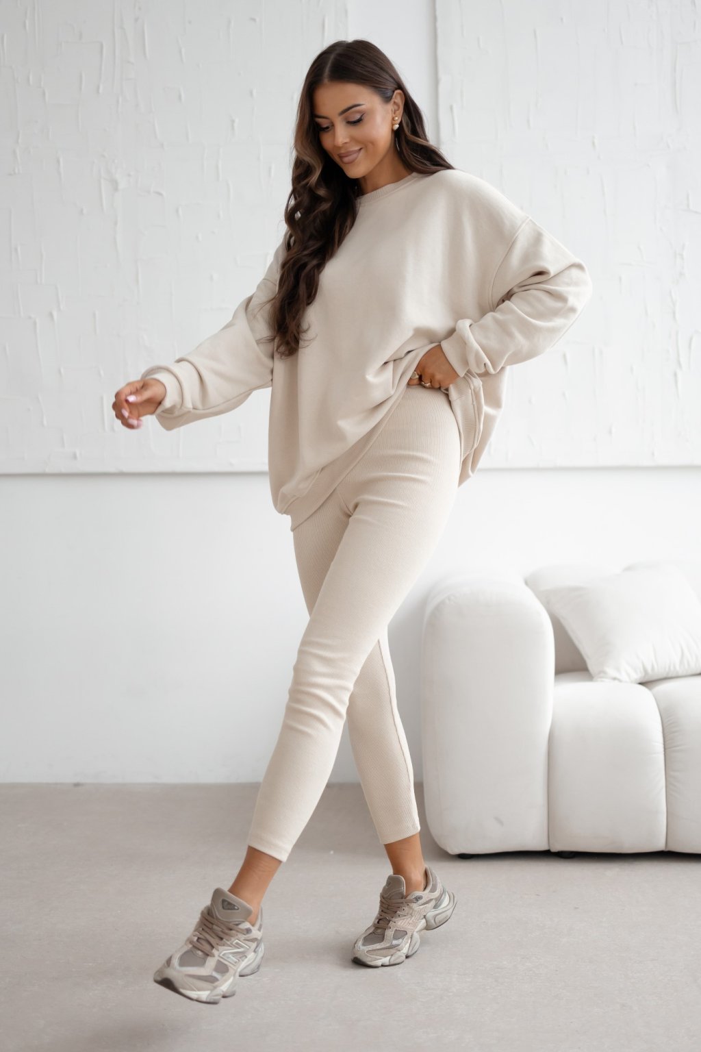 Oversize mikina v tomto kompletu je dokonalým kouskem pro každý outfit. Její volný střih dodává pocit pohodlí, zatímco její moderní design zajišťuje, že budete vypadat stylově, ať už jste kdekoli. Žebrované legíny jsou skvělým doplňkem k mikině. Jsou vyrobené z kvalitního, bavlněného materiálu. Žebrování dodává legínám jedinečný vzhled, který je odlišuje od ostatních.