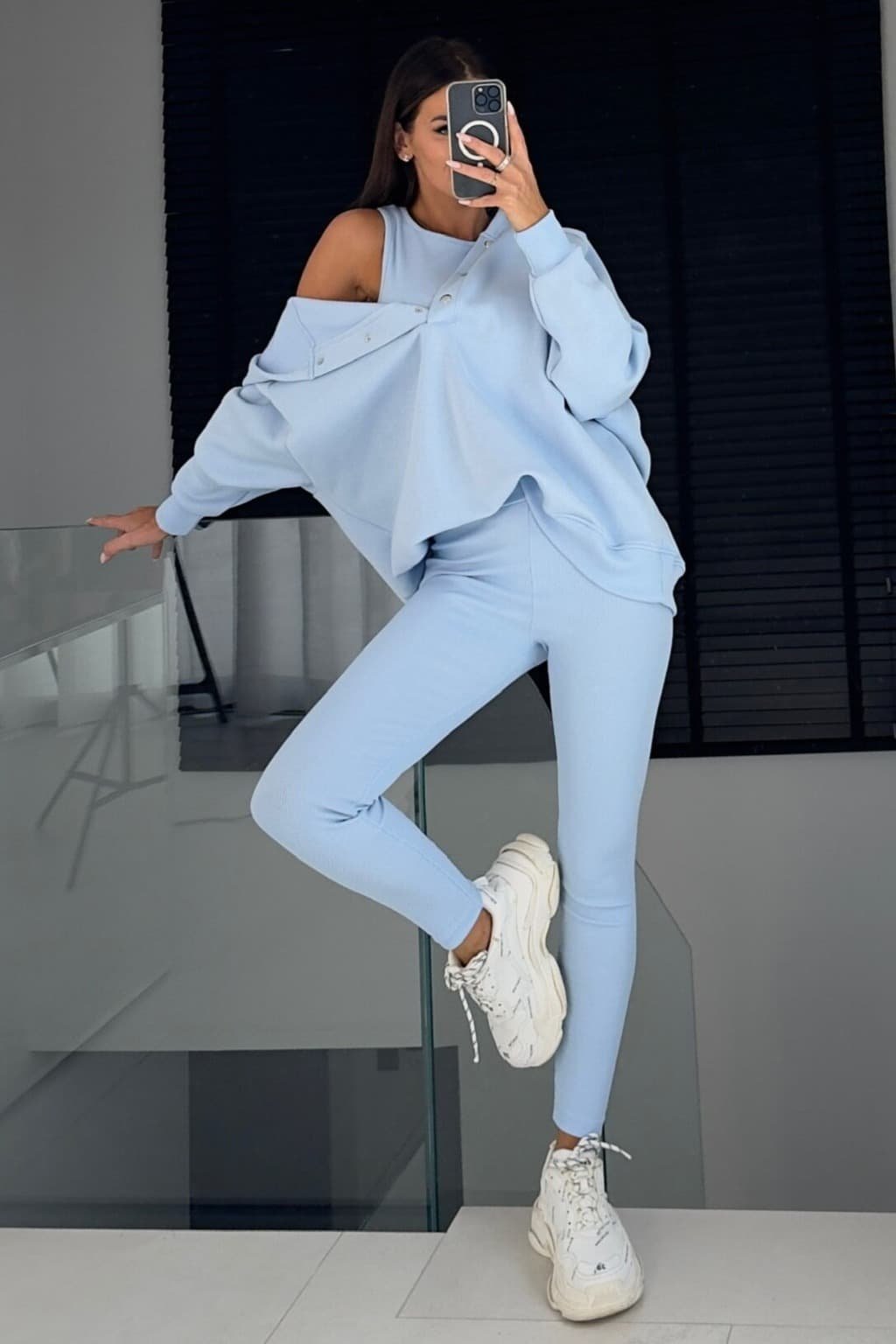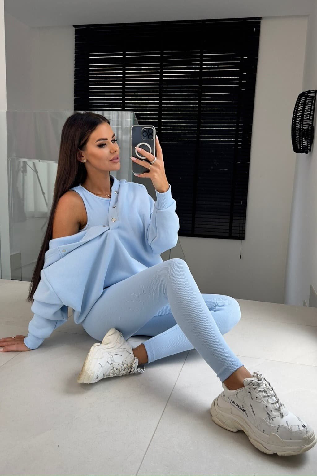 Pohodlný komplet Paloma 3v1 se skládá z mikiny, topu a žebrovaných legín. Tento model bude perfektní pro každodenní použití díky tomu, že je vyroben z příjemné a pohodlné látky. Nosit lze společně i samostatně a tak využít např. legíny do jiného outfitu.