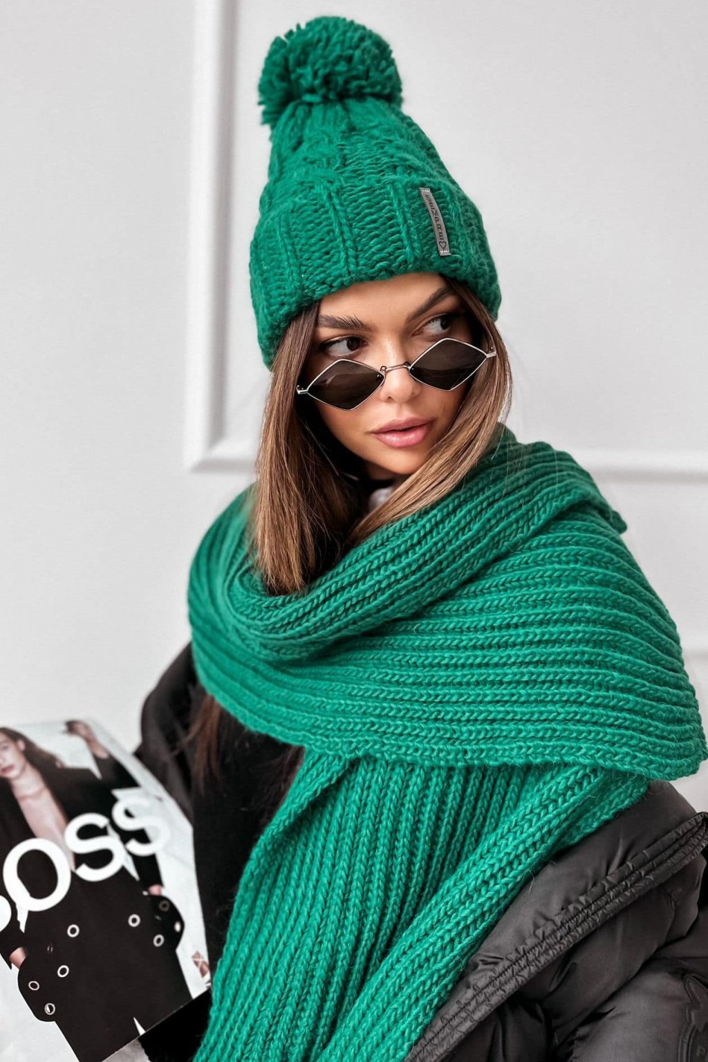 Luxusní dámský set čepice a velké zimní šály z návrhářské dílny Sempre.