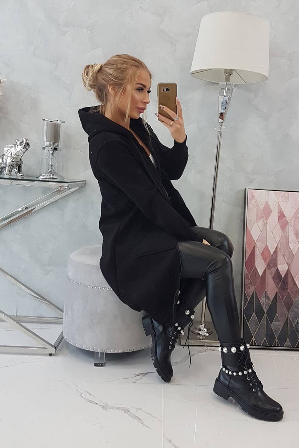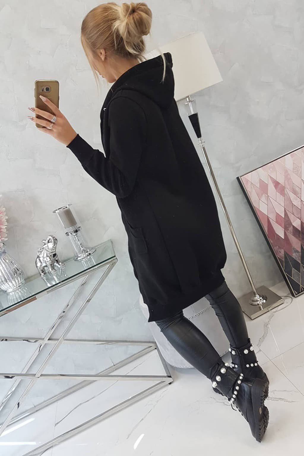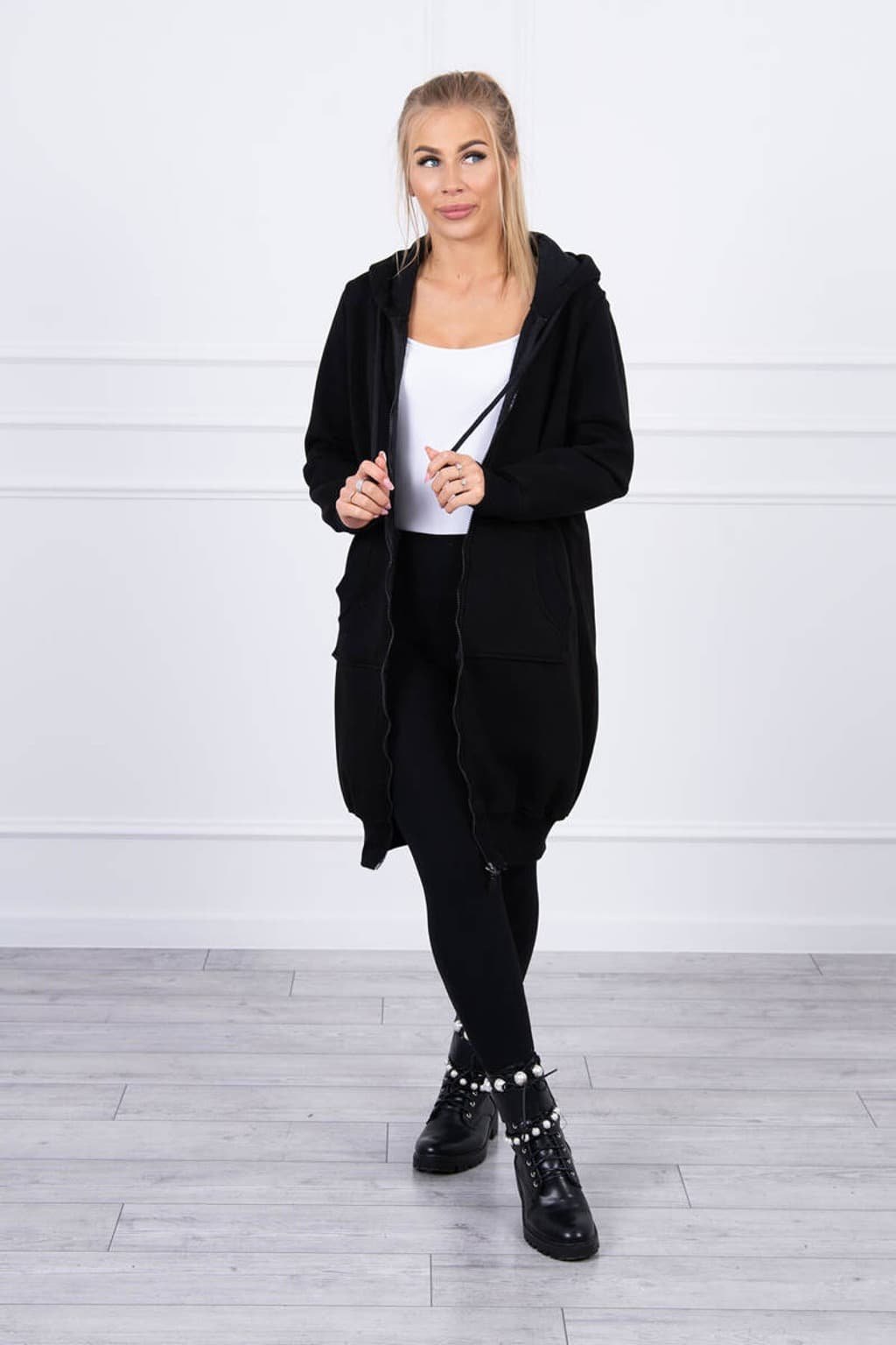 Mikinové šaty na zips 9302 čierne