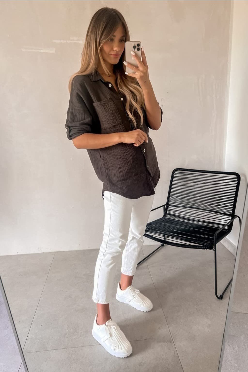 Mušelínová košile je skvělým kouskem nejen pro vaše letní outfity. Můžete ji nosit na kalhoty, na šortky nebo i jako přehoz na plavky. Zapínání je na knoflíky, rukávy lze nosit klasicky nebo na knoflíky jako 3/4. Mušelín je jemný, příjemný a vzdušný materiál, který si zamilujete.