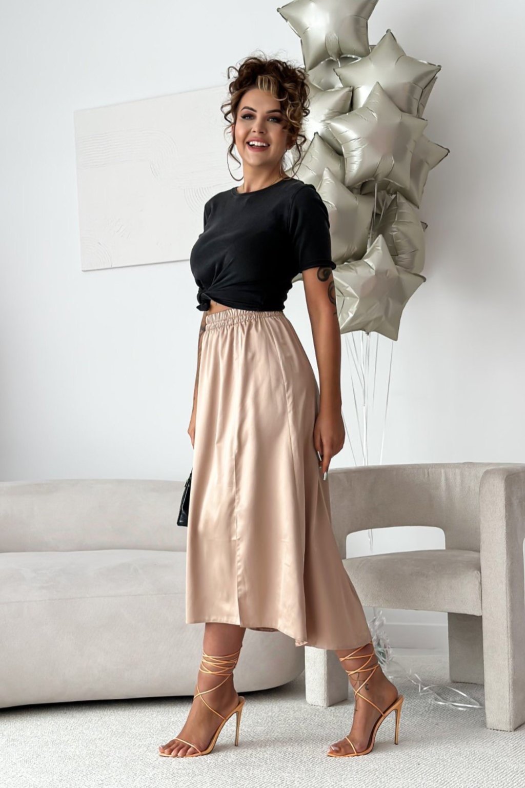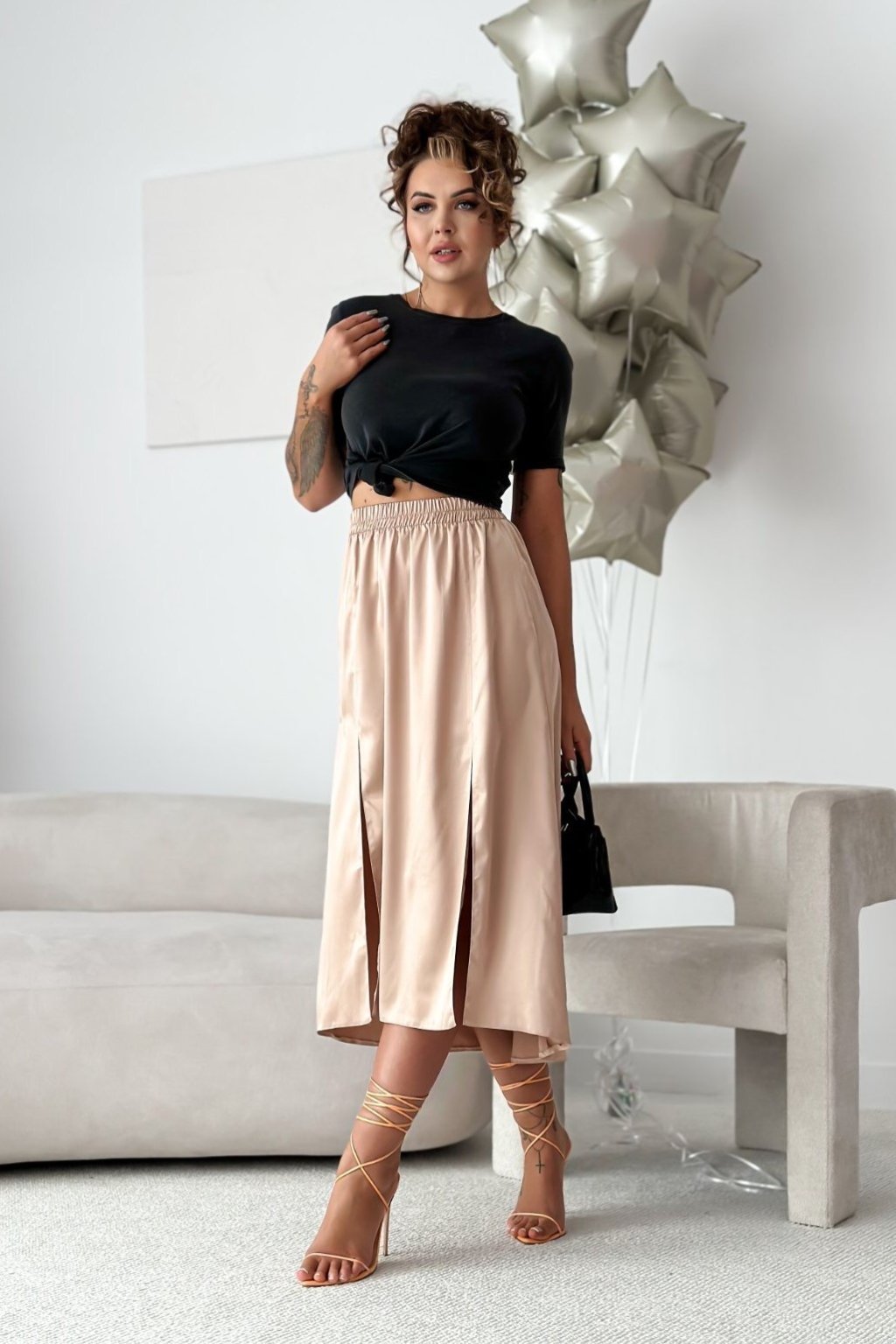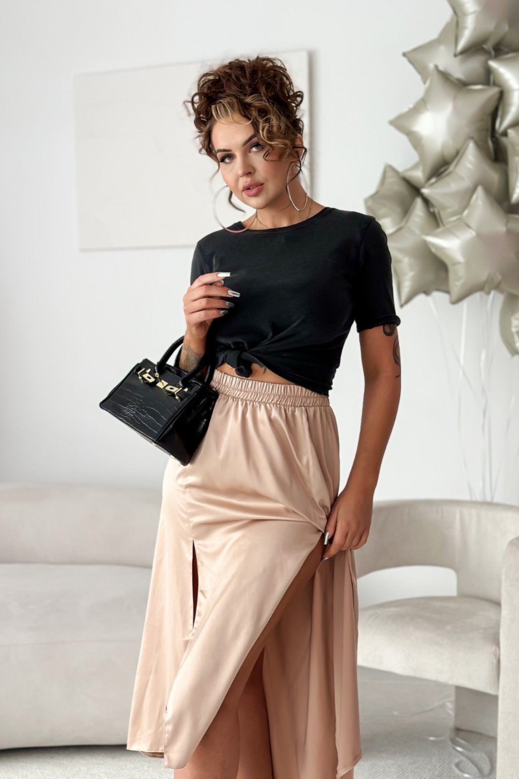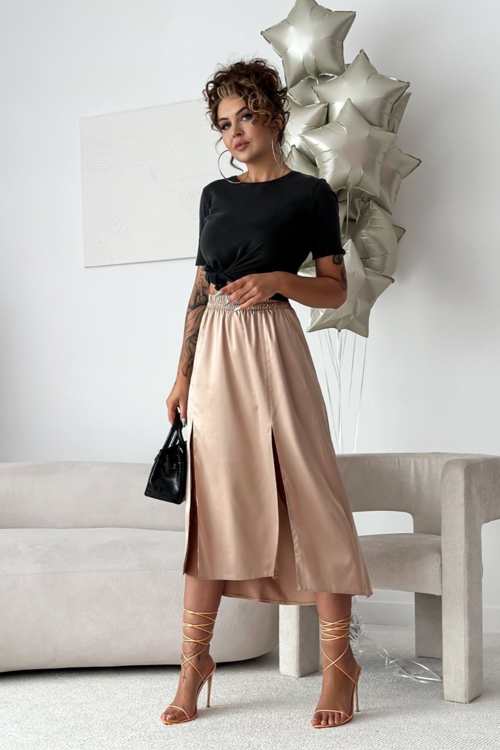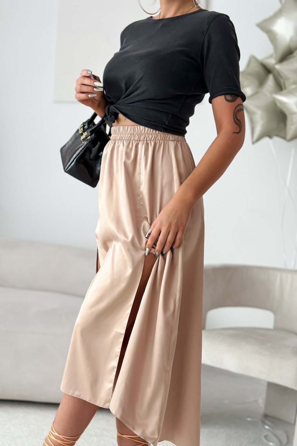 MUST HAVE kousek jarní a letní sezony! Sukně z designerské dílny ByMia se dvěma rozparky. Vepředu je trochu kratší, vzadu delší. Sukně je neuvěřitelně pohodlná, vyrobená z na dotek příjemného, saténového materiálu, který neprosvítá.