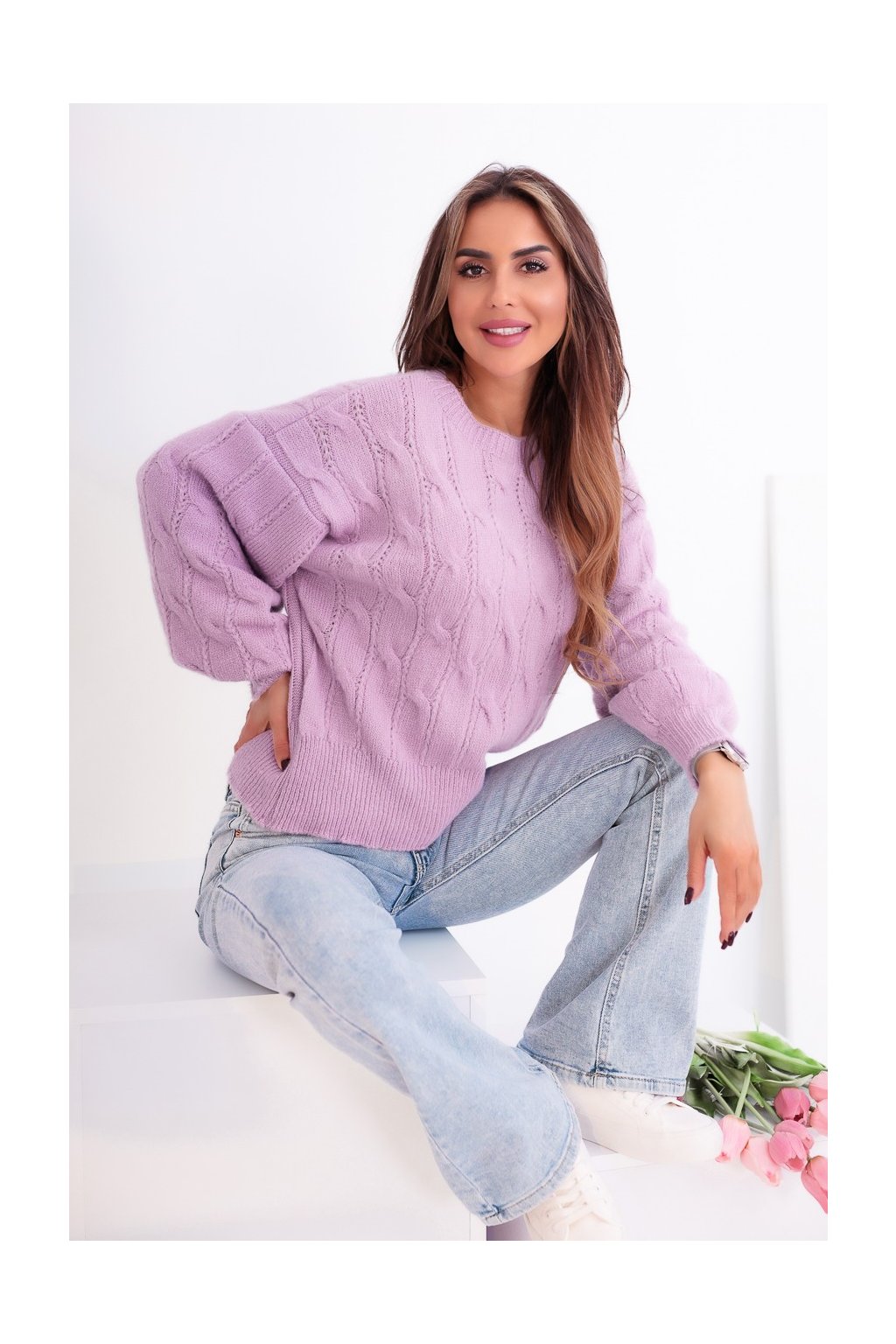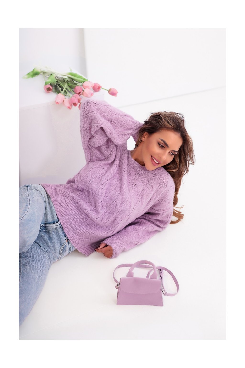 Objevte půvab našeho dámského svetru v jemné lilové barvě, který je ztělesněním elegance a komfortu. Vyroben z neuvěřitelně měkkého a příjemného materiálu, tento kousek je zdobený atraktivním pleteným vzorem. Kulatý výstřih a lemované zakončení dodávají tomuto svetru klasický vzhled, zatímco jeho barva přináší svěží nádech do vašeho šatníku. Ideální pro každodenní eleganci.